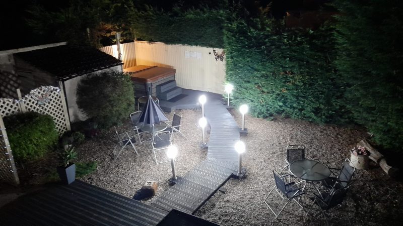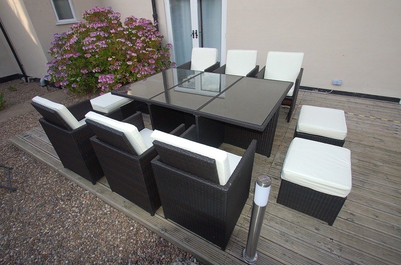Outside there is a decked patio with rattan furniture to seat ten, and a decked path leading to the Hot Tub, which is illuminated at night.